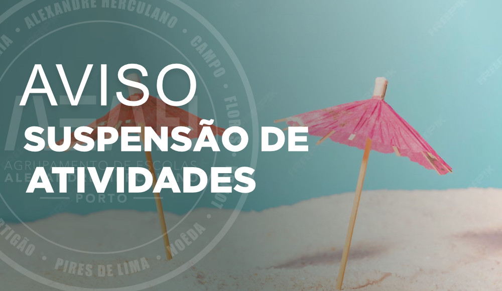 Suspensão das atividades no AE Alexandre Herculano, no período compreendido entre os dias 18 e 22 de agosto, inclusive.